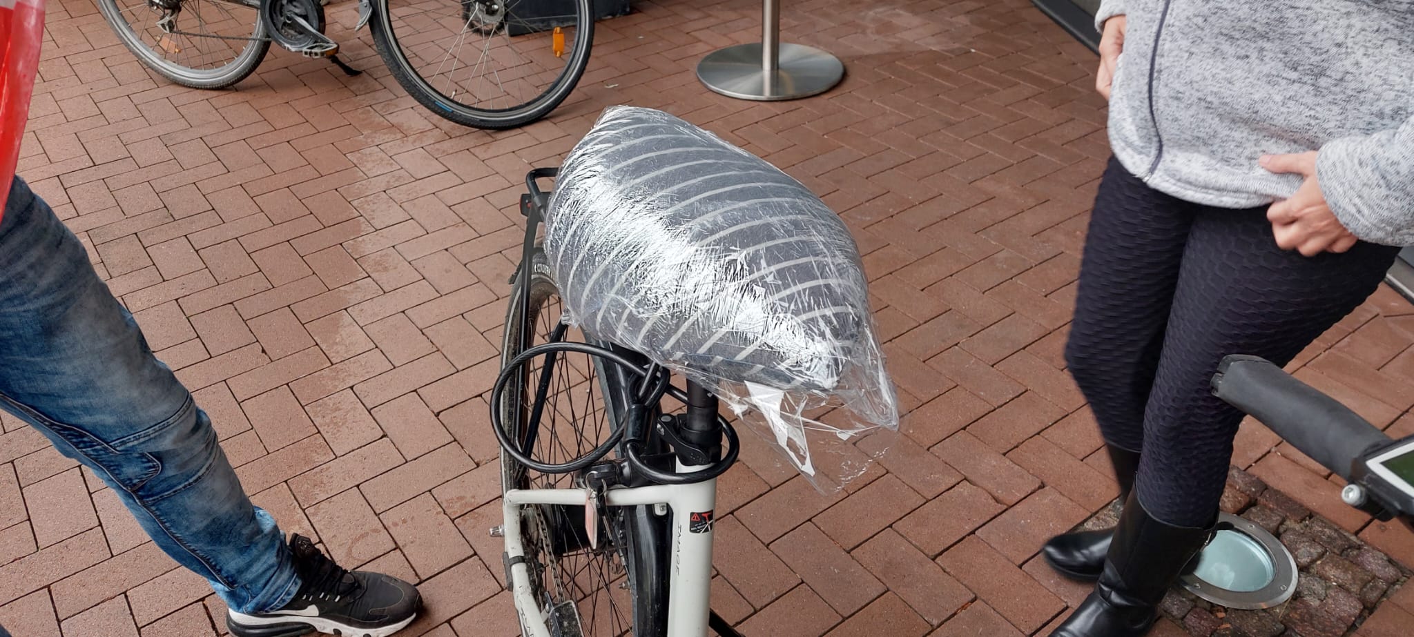 Der nächste Morgen stand an. Frühstück war 9 Uhr, für Malte fing das glaube ich um 7 Uhr an, dann um 8 Uhr, dann um 9 Uhr, und nochmal um 9:30 Uhr mit Christian. Habe noch einen so viel essen sehen 😉 In den anderen Hotels gab es wohl auch was, so dass wir pünktlich um 10 Uhr starten wollten. Sigi’s Reifen war platt, das konnten wir mit einer Pumpe, vorerst beheben. Sandra hatte eine ganz neue Art der Technik entwickelt, also nicht nur entwickelt, sondern auch mit Frischhaltefolie umwickelt, also das Kissen auf dem Satteln. Sehr interessante Technik, sollte über Patente nachdenken 😉 Jetzt konnte es aber los gehen. Tina ermunterte uns mit ihrer APP, jetzt Regen und nachher auch, also den ganzen Tag.