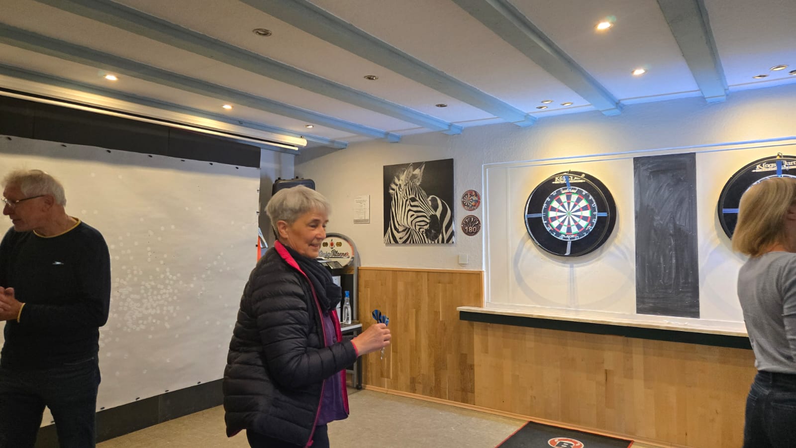 SO Freunde, heute mal, wie immer, was los beim TBD. Wieder mal regen, aber egal😉 Drei neuer fanden sich zum Gehfußball ein und drei, plus Gisela aus der Schweiz, zum Dart, die anderen zwei, auch sehr Sympathisch. „Gisela, mach die 9“ und wat macht se, die 9😊 Gisela hat den Zahn der Zeit erkannt, demnächst Gehfussball und Dart in Lommiswil – Schweiz. Wir arbeiten an einen Heli- Landeplatzplatz 😉. Wie immer gab es auch was vom Grill. Sonntag geht es weiter mit QiGong, Tina übernimmt, weil Dagi on Tour ist.