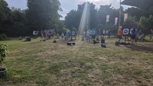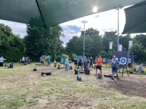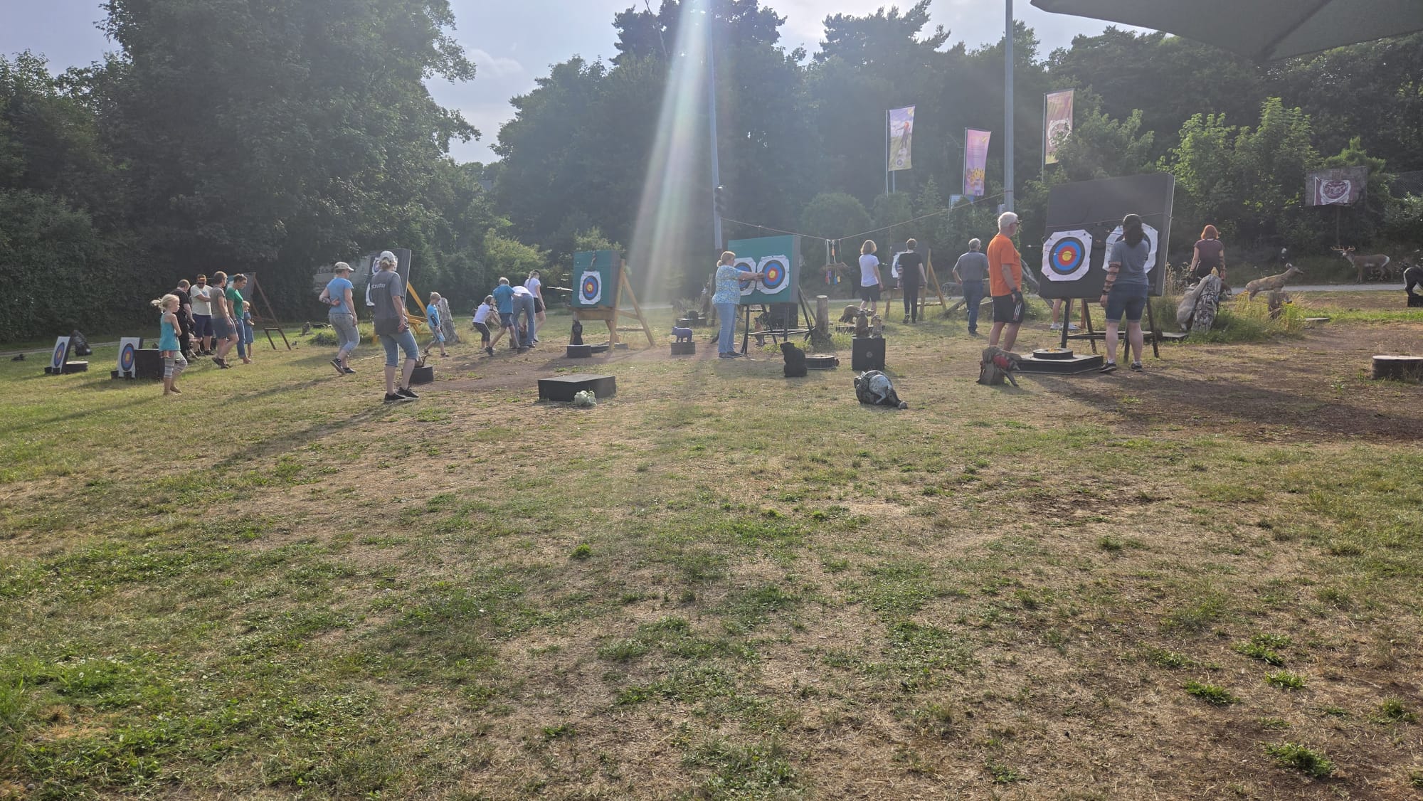SO Freunde, bei bestem Wetter konnten rund 30 Kandidaten am Bogensport teilnehmen. Da unser „Blumenkind“ vor Ort war, gibt es auch mal ein paar schicke Fotos. Nach dem Sport konnten wir noch den Sieg der U21 auf dem Empfangsgerät bewundern. Also ein gelungener Abend. Morgen geht es bei Sport im Park mit Gehfussball und Dart weiter und am Sonntag endet die Woche um 10 Uhr mit QiGong, also schaut vorbei😉.