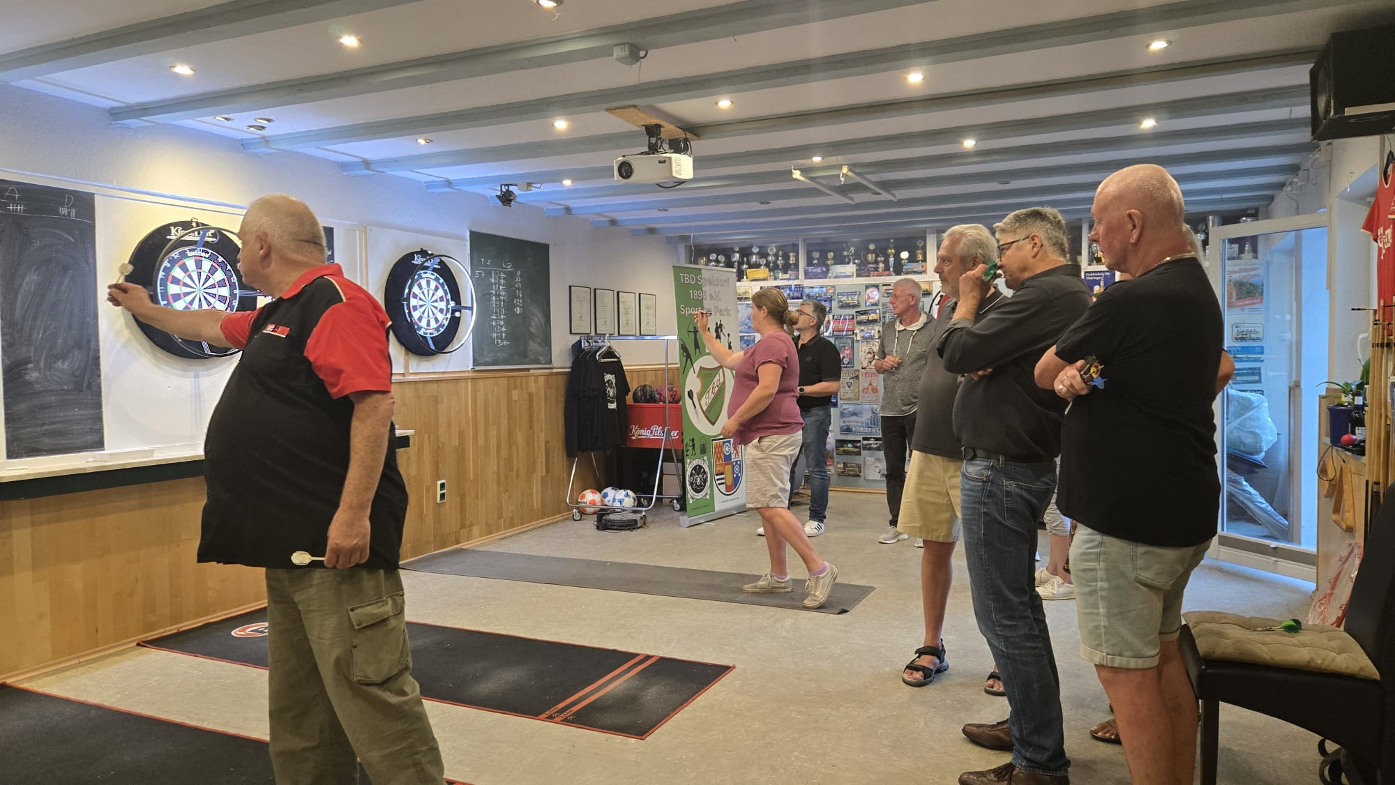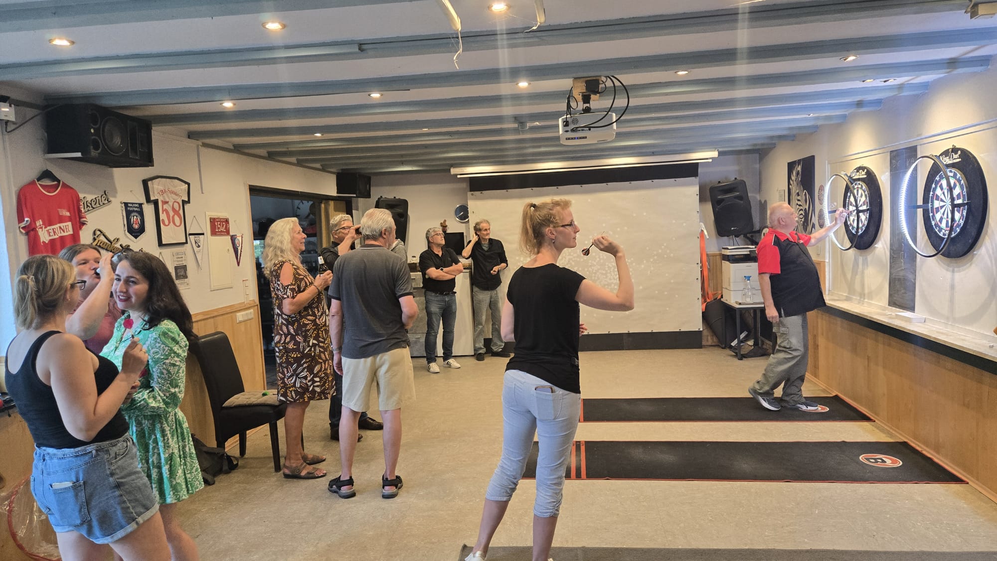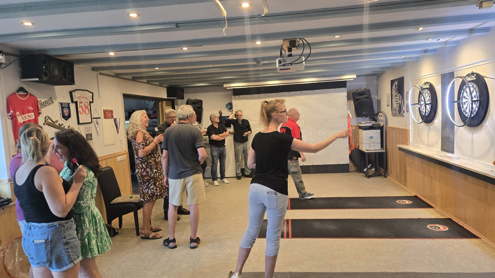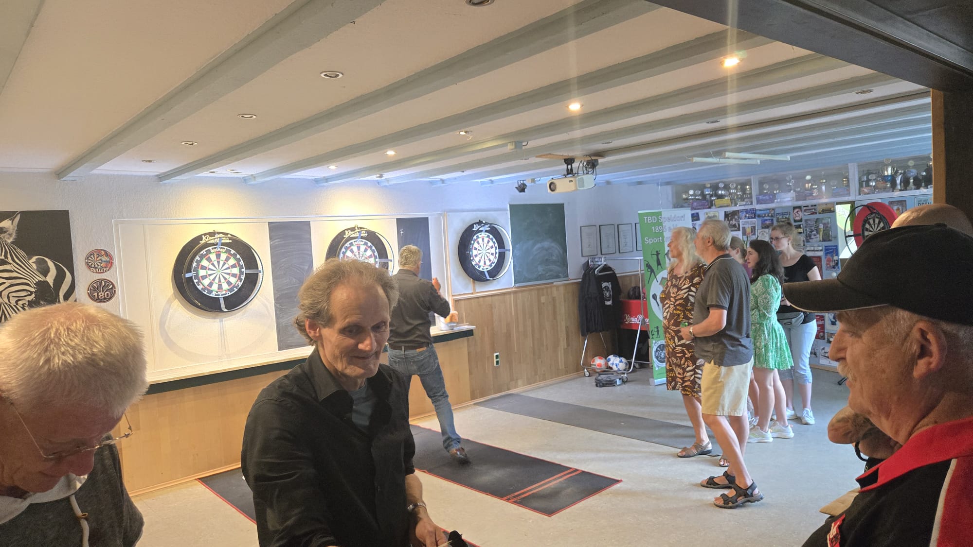 SO Freunde, heute ging beim Dart mal richtig die Post ab. Rund 10 interessierte Aktionisten konnten heute der Dartsport nähergebraucht werden. Es muss auf jedenfall Spaß gemacht haben, den um 21 Uhr wurde, noch Pizza bestellt und dann weitergespielt😉. Um 24 Uhr war noch das Licht an. Beim Gehfussball waren heute viel Ausfälle zu verzeichnen, so das es mit 4 gegen 4, bei etwas erhöhtem Gehfussball wieder mal 5:5 ausging😉. Sonntag ab 10 Uhr, findet dann leider zum letzten mal QiGong statt. Also schaut vorbei.