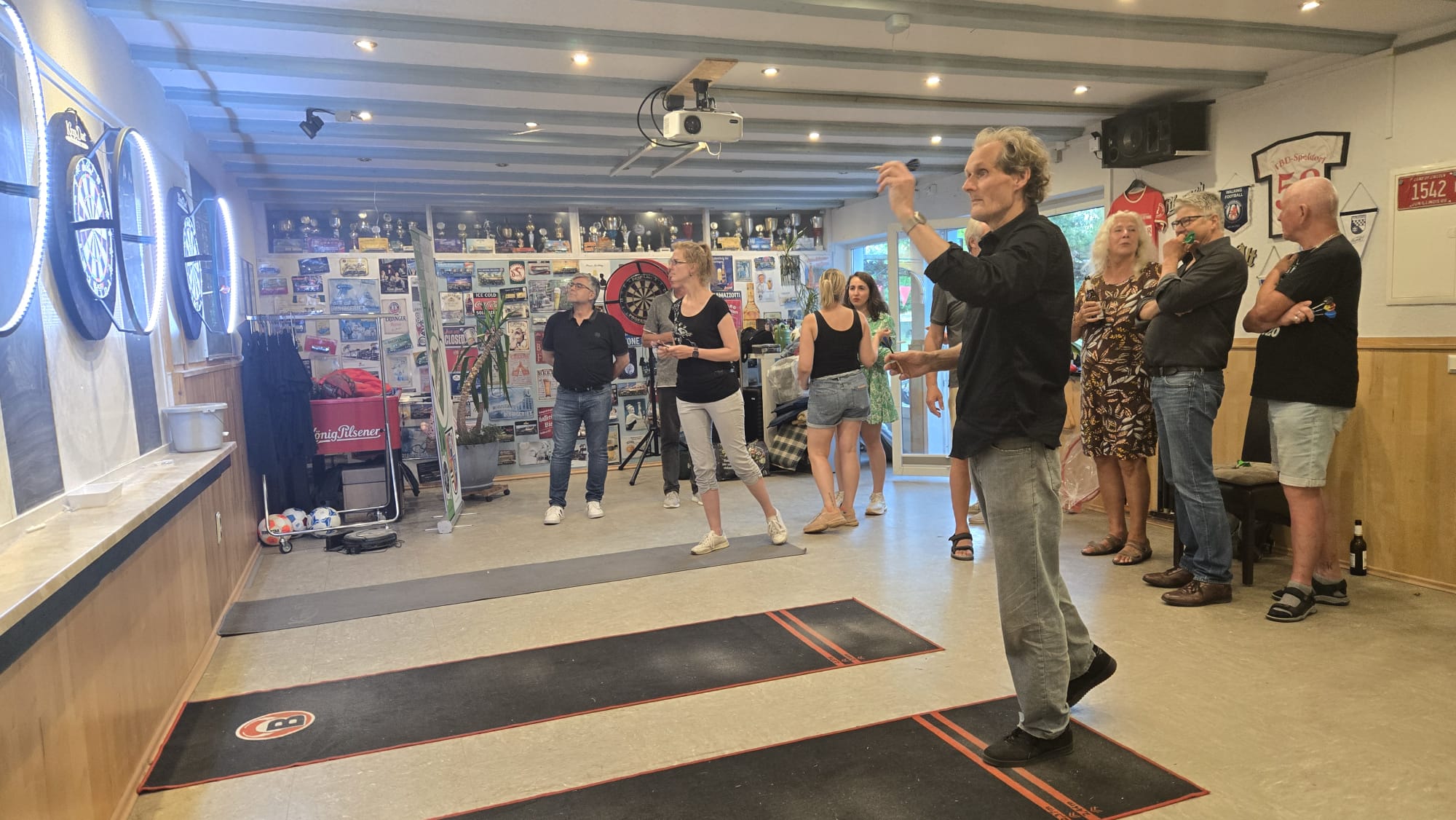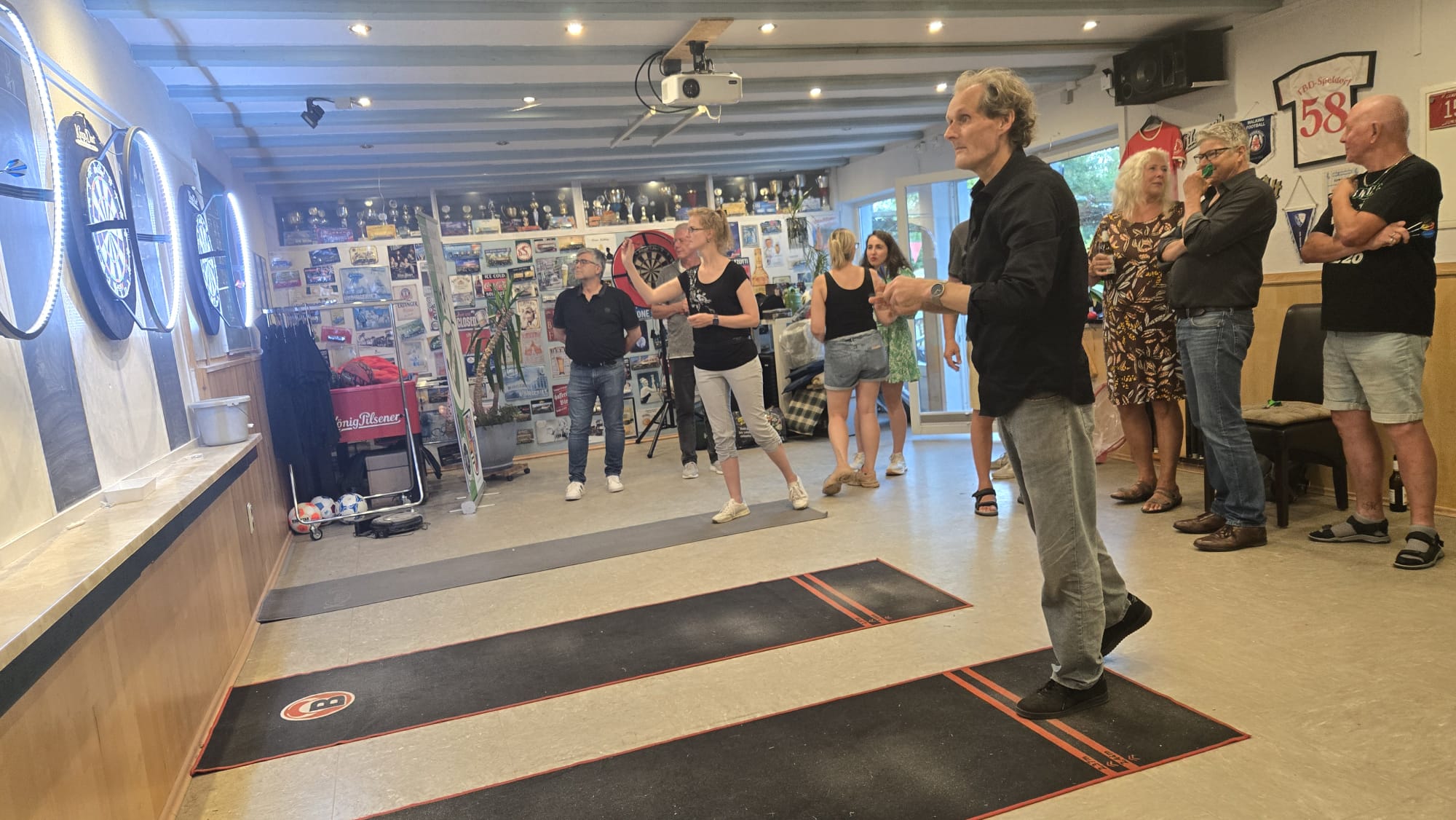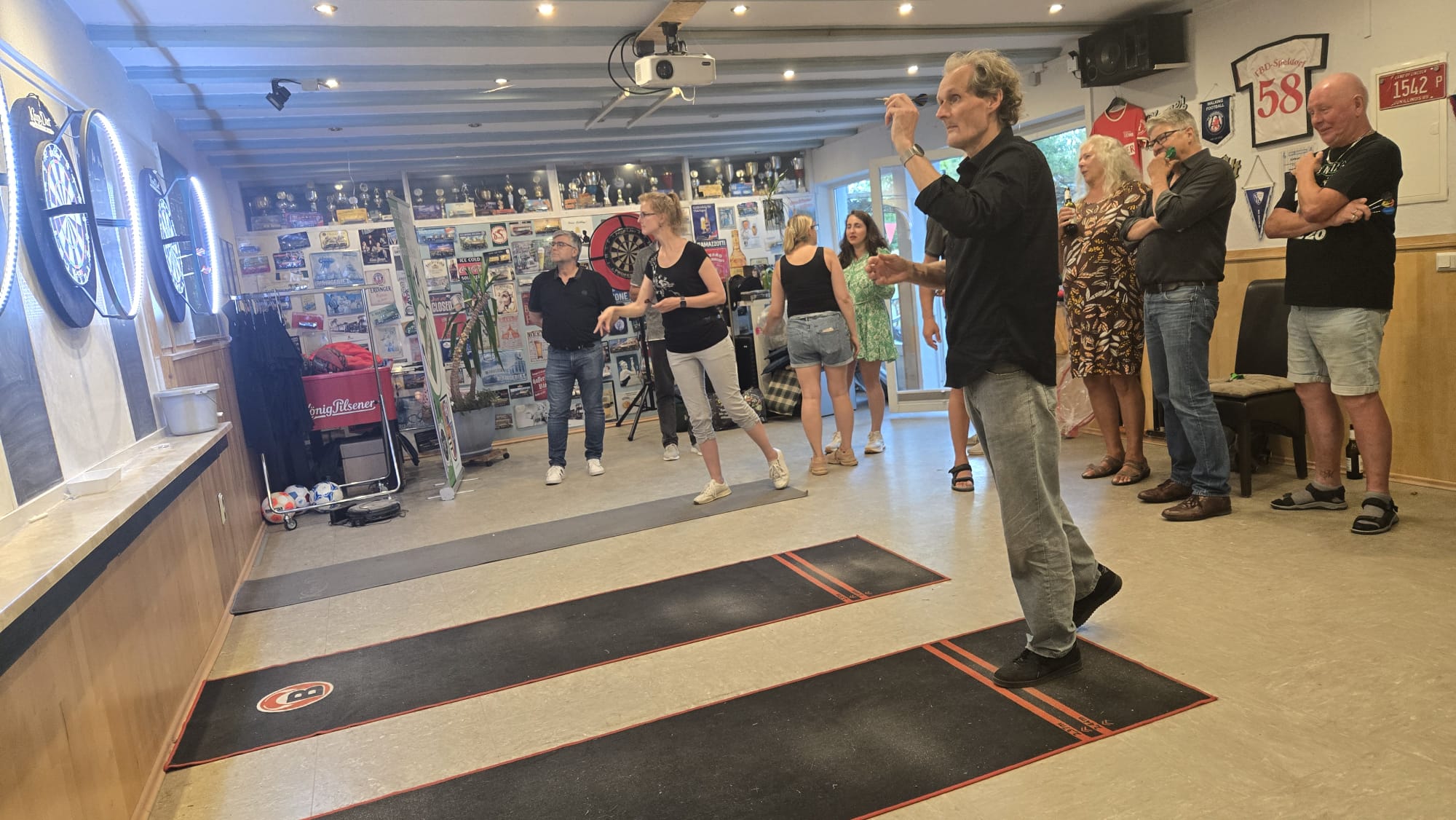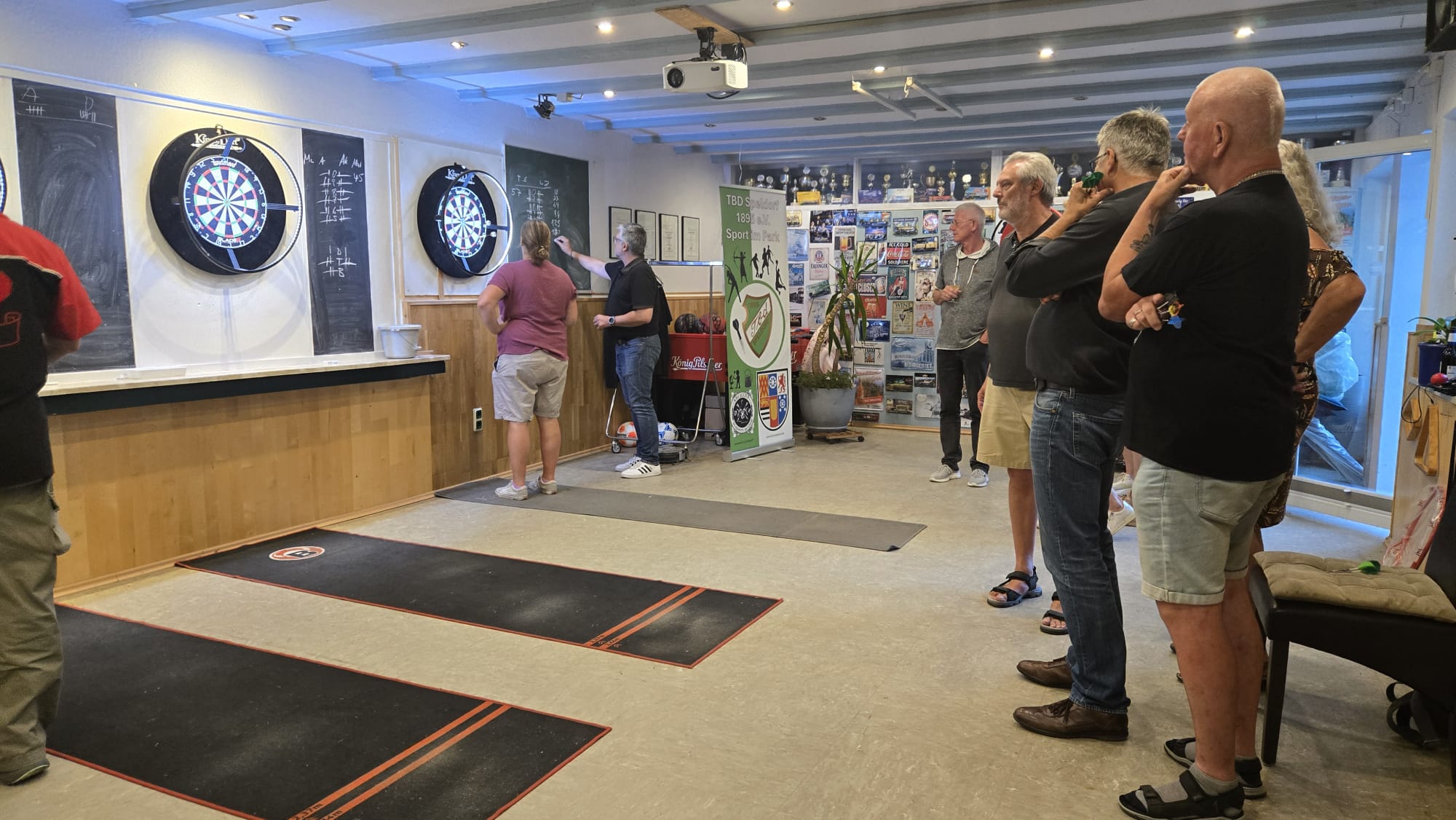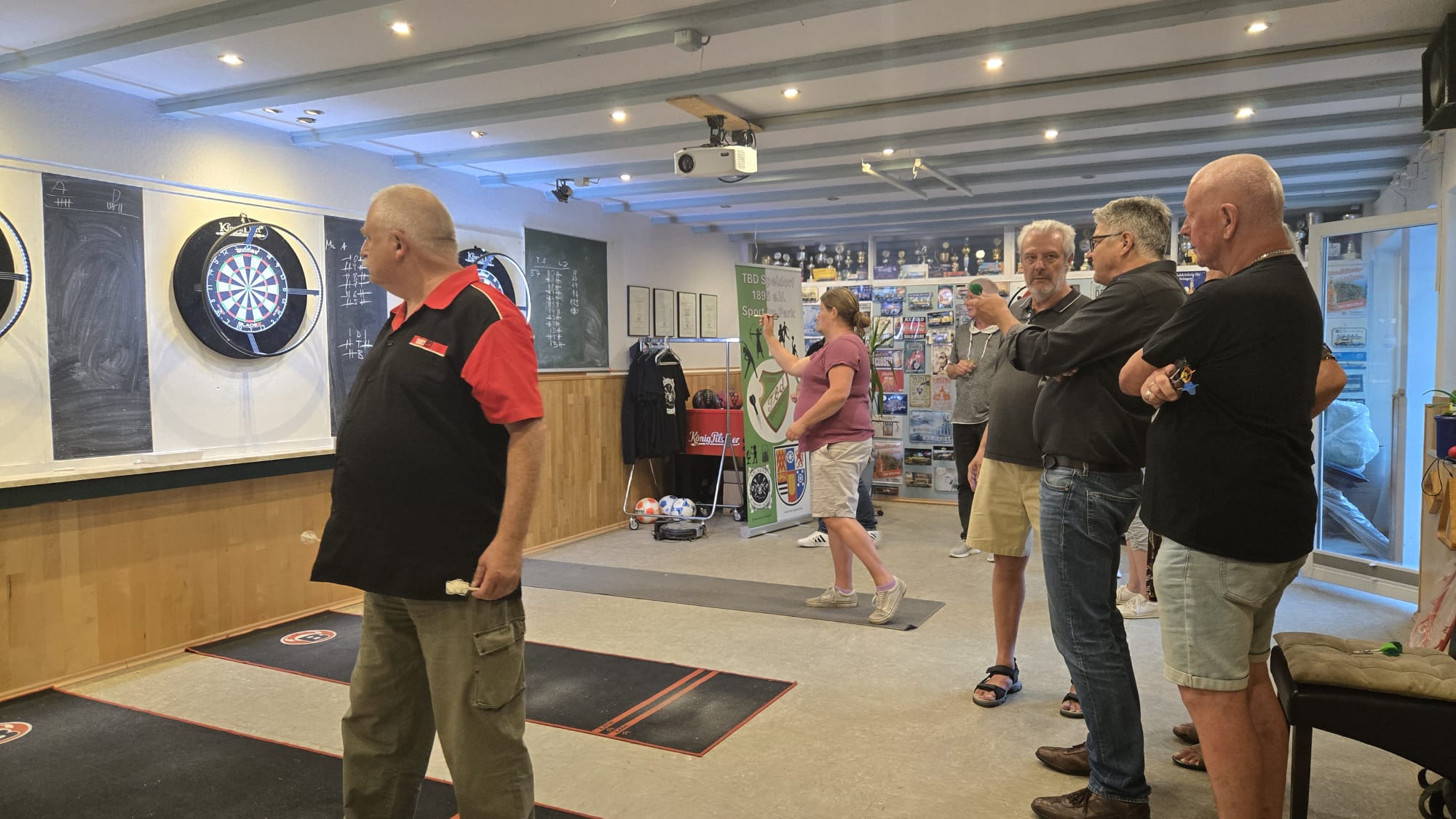 SO Freunde, heute ging beim Dart mal richtig die Post ab. Rund 10 interessierte Aktionisten konnten heute der Dartsport nähergebraucht werden. Es muss auf jedenfall Spaß gemacht haben, den um 21 Uhr wurde, noch Pizza bestellt und dann weitergespielt😉. Um 24 Uhr war noch das Licht an. Beim Gehfussball waren heute viel Ausfälle zu verzeichnen, so das es mit 4 gegen 4, bei etwas erhöhtem Gehfussball wieder mal 5:5 ausging😉. Sonntag ab 10 Uhr, findet dann leider zum letzten mal QiGong statt. Also schaut vorbei.