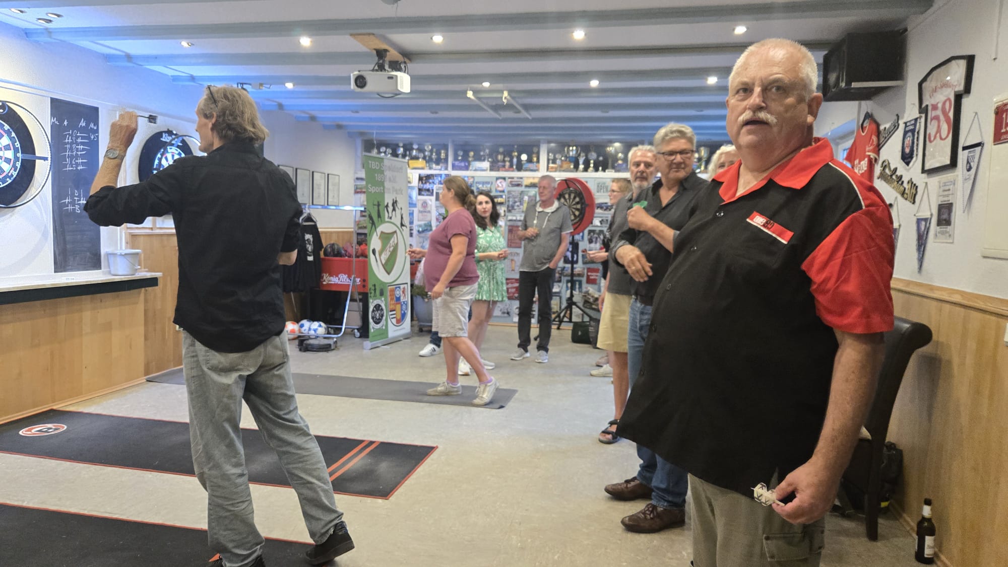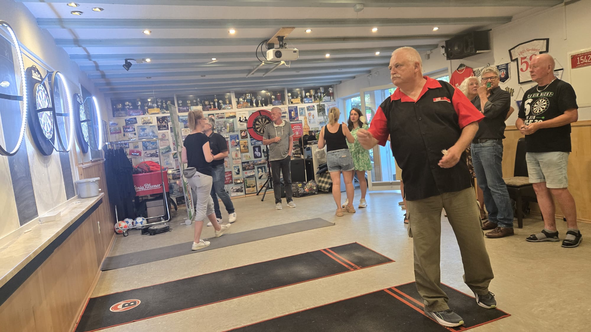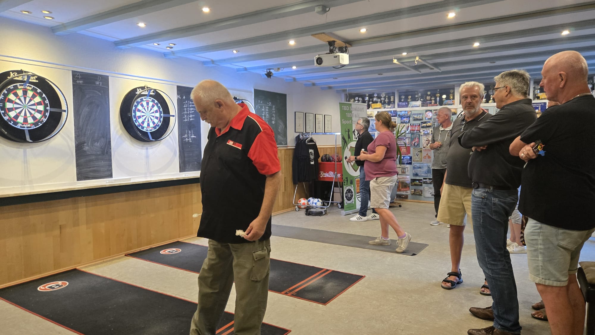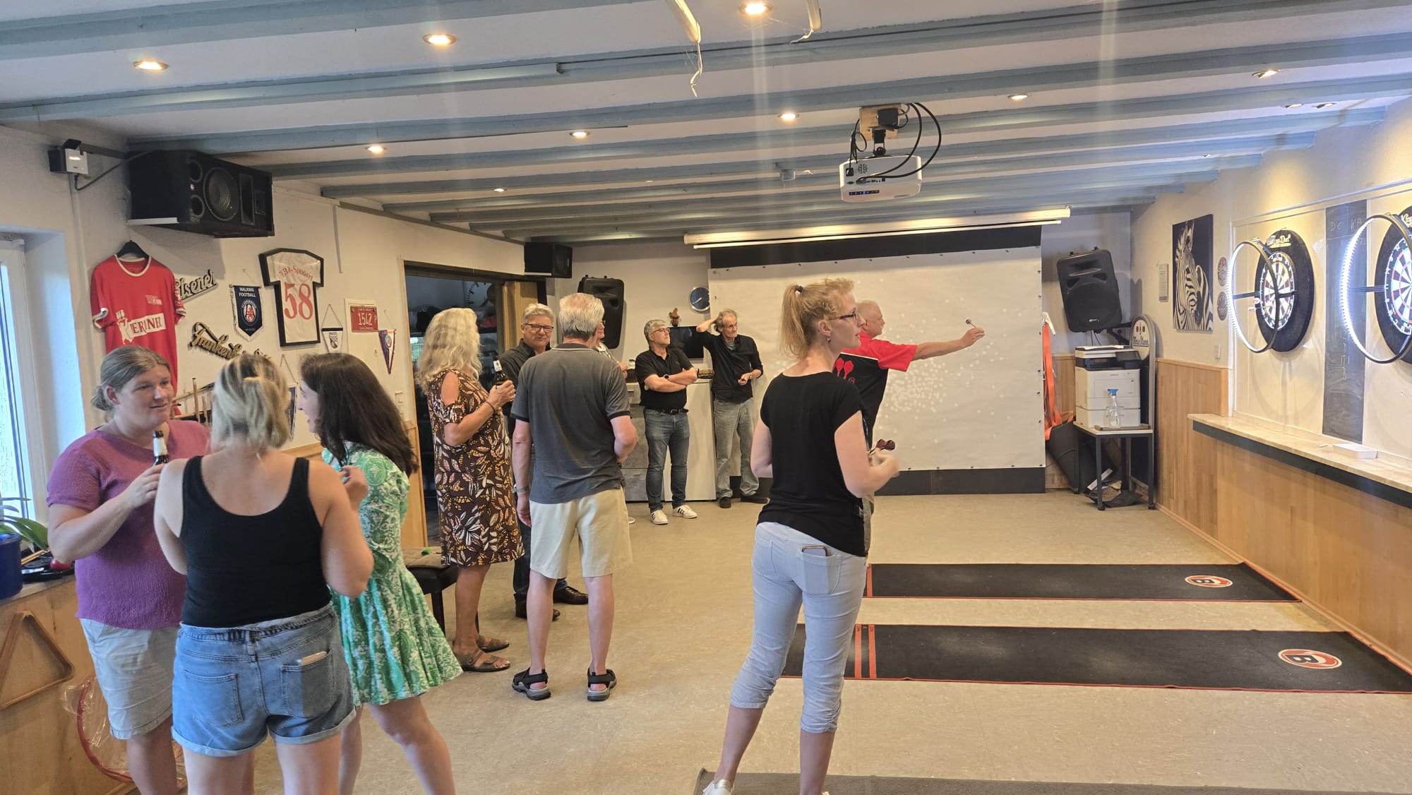 SO Freunde, heute ging beim Dart mal richtig die Post ab. Rund 10 interessierte Aktionisten konnten heute der Dartsport nähergebraucht werden. Es muss auf jedenfall Spaß gemacht haben, den um 21 Uhr wurde, noch Pizza bestellt und dann weitergespielt😉. Um 24 Uhr war noch das Licht an. Beim Gehfussball waren heute viel Ausfälle zu verzeichnen, so das es mit 4 gegen 4, bei etwas erhöhtem Gehfussball wieder mal 5:5 ausging😉. Sonntag ab 10 Uhr, findet dann leider zum letzten mal QiGong statt. Also schaut vorbei.