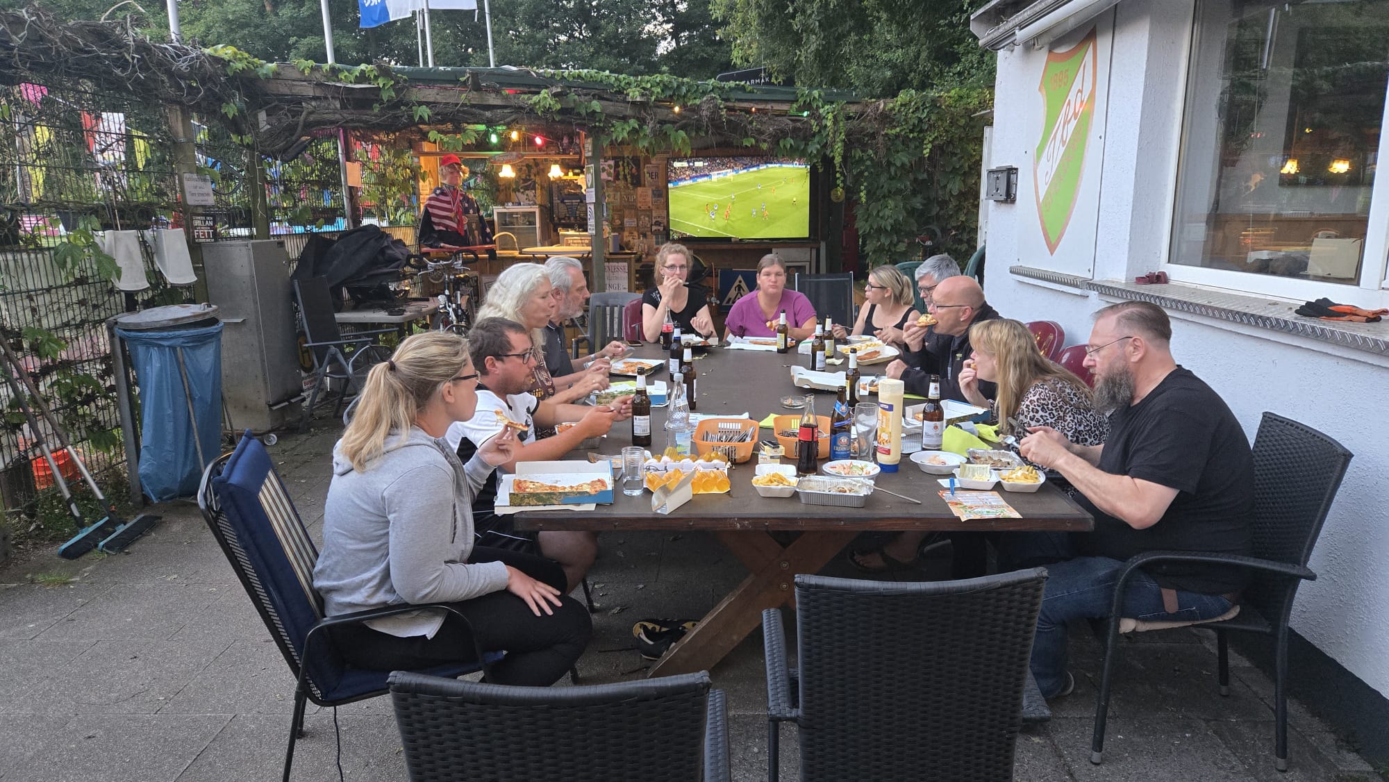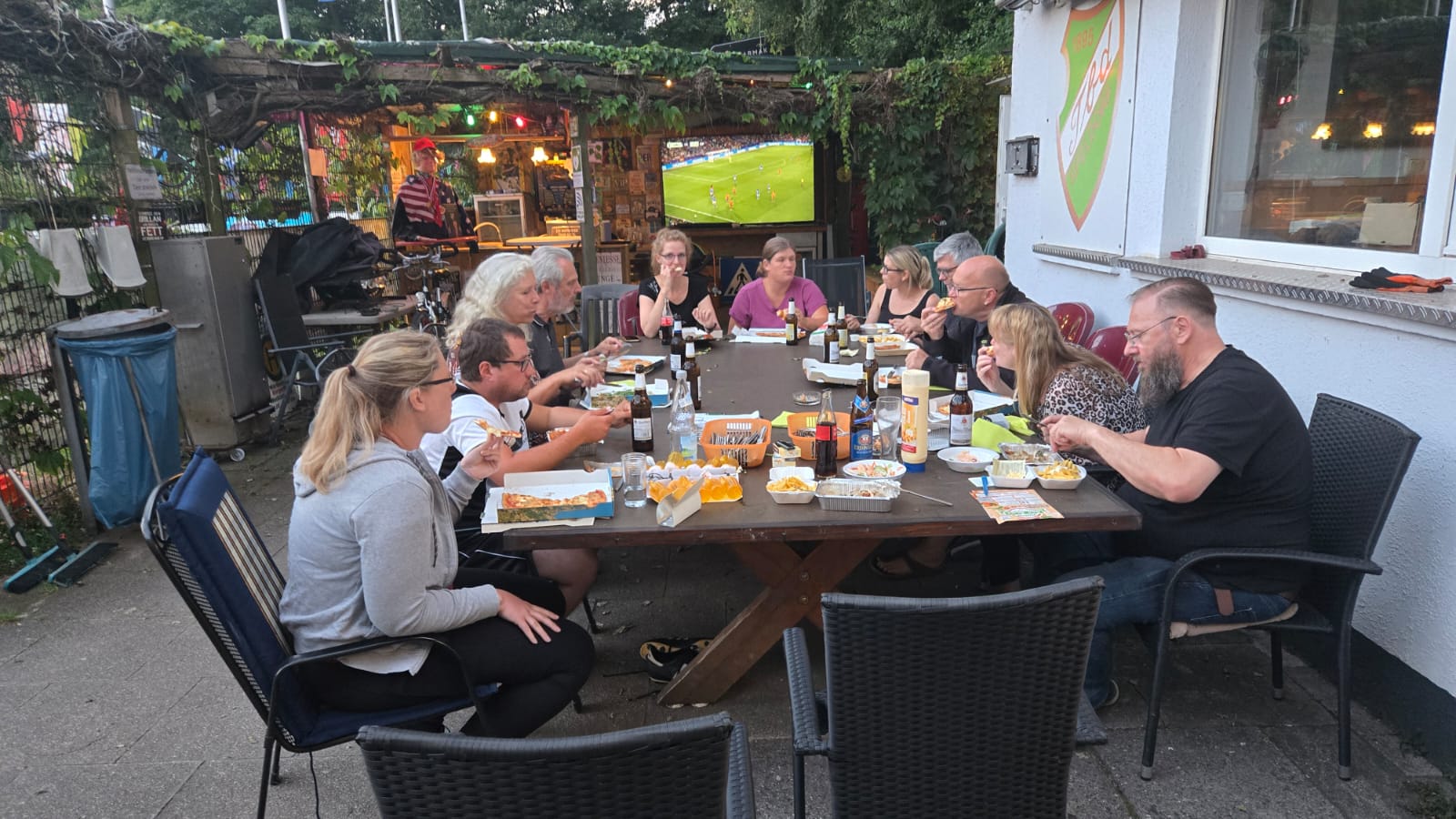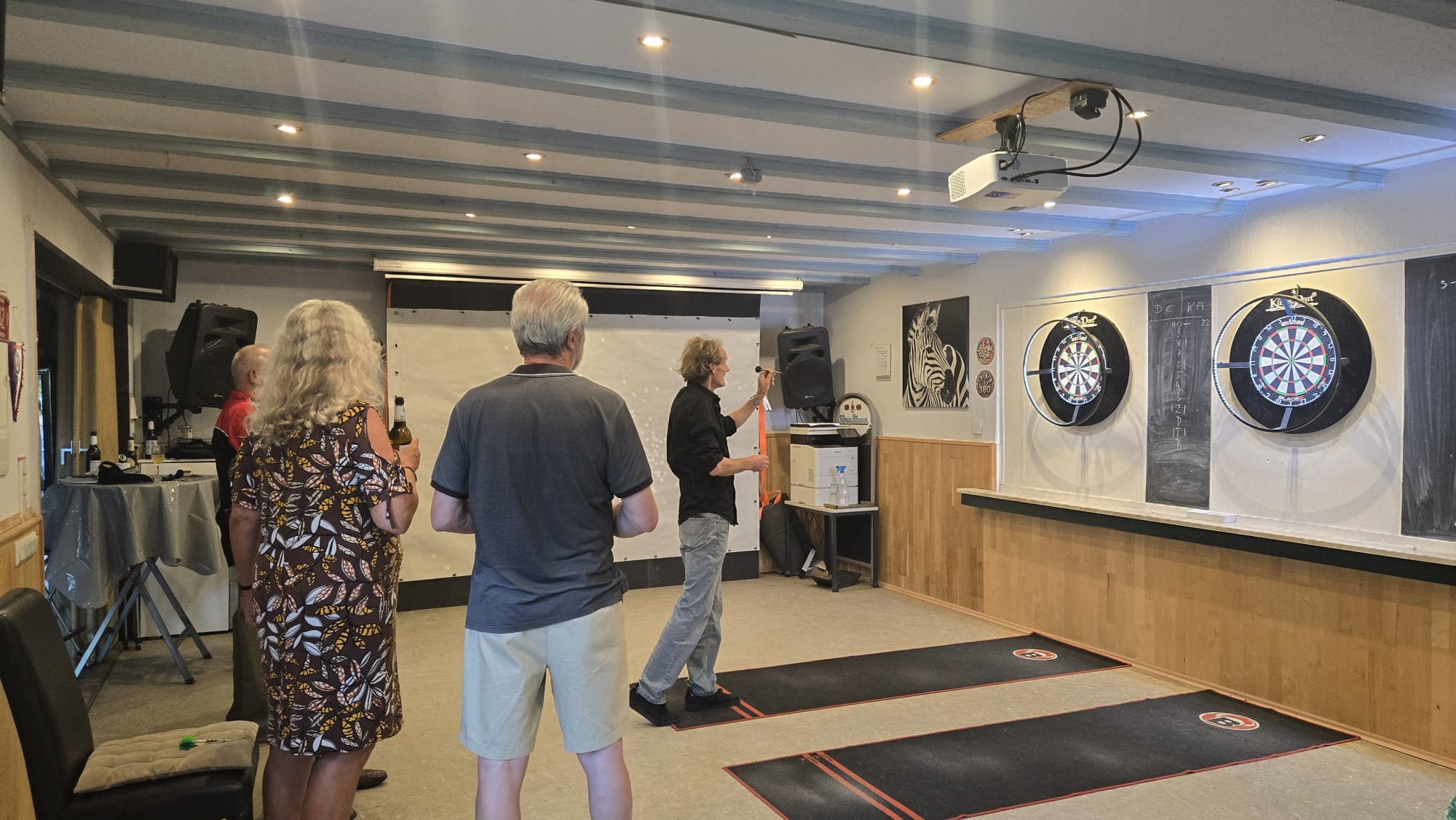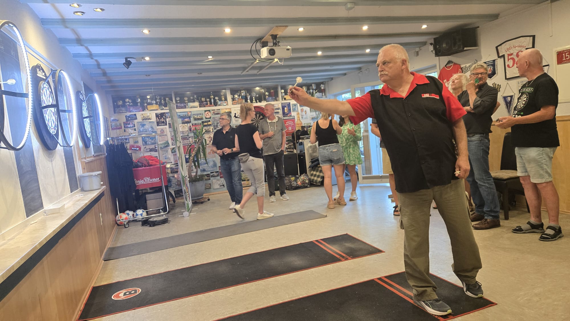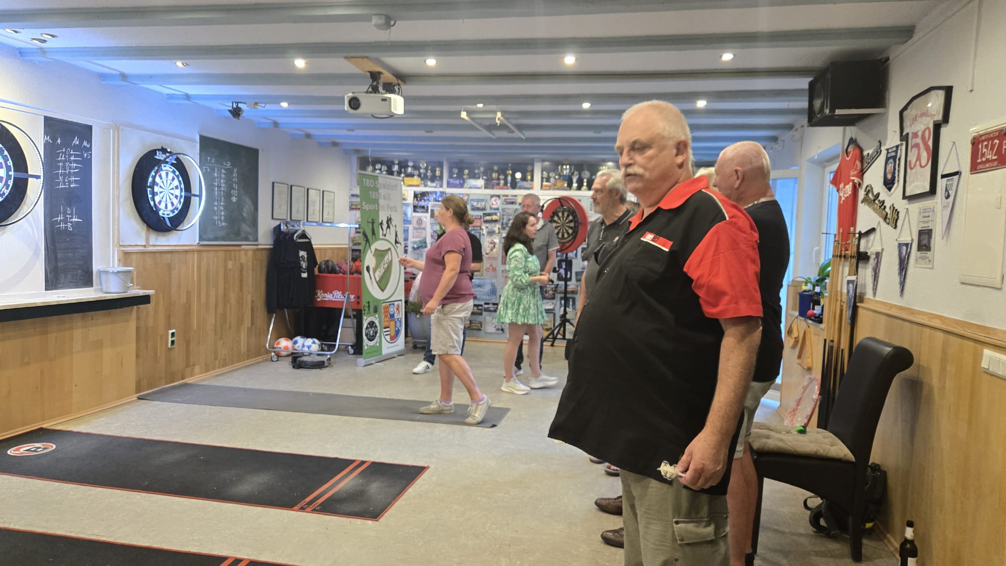SO Freunde, heute ging beim Dart mal richtig die Post ab. Rund 10 interessierte Aktionisten konnten heute der Dartsport nähergebraucht werden. Es muss auf jedenfall Spaß gemacht haben, den um 21 Uhr wurde, noch Pizza bestellt und dann weitergespielt😉. Um 24 Uhr war noch das Licht an. Beim Gehfussball waren heute viel Ausfälle zu verzeichnen, so das es mit 4 gegen 4, bei etwas erhöhtem Gehfussball wieder mal 5:5 ausging😉. Sonntag ab 10 Uhr, findet dann leider zum letzten mal QiGong statt. Also schaut vorbei.
