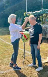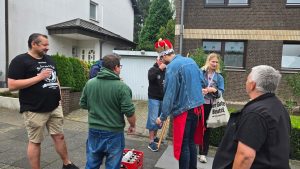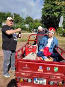 SO Freunde, leider ist auch der Tag Geschichte. Von 10-11 Uhr fuhr ein kleines rotes Auto mit König und Königin hinten drauf von der Hittfeldstrasse zur Platzanlage. Am Abend endete seine Dirigentschaft und ein neuer König wurde an der Brezel geschlagen. Morten übernimmt jetzt für ein Jahr und er hat Anika als Königin gewählt.