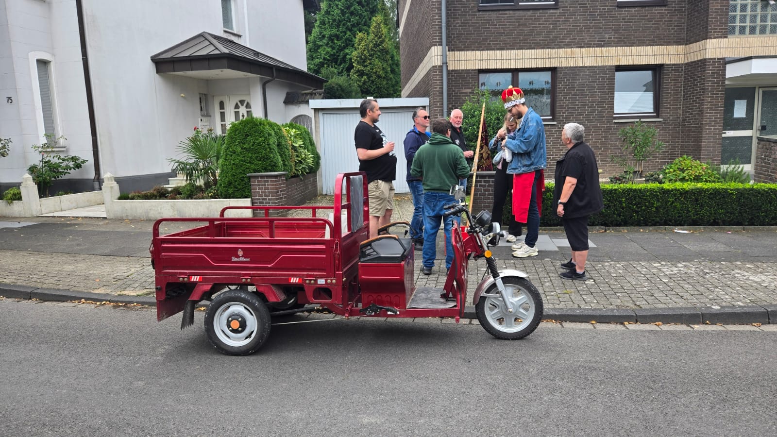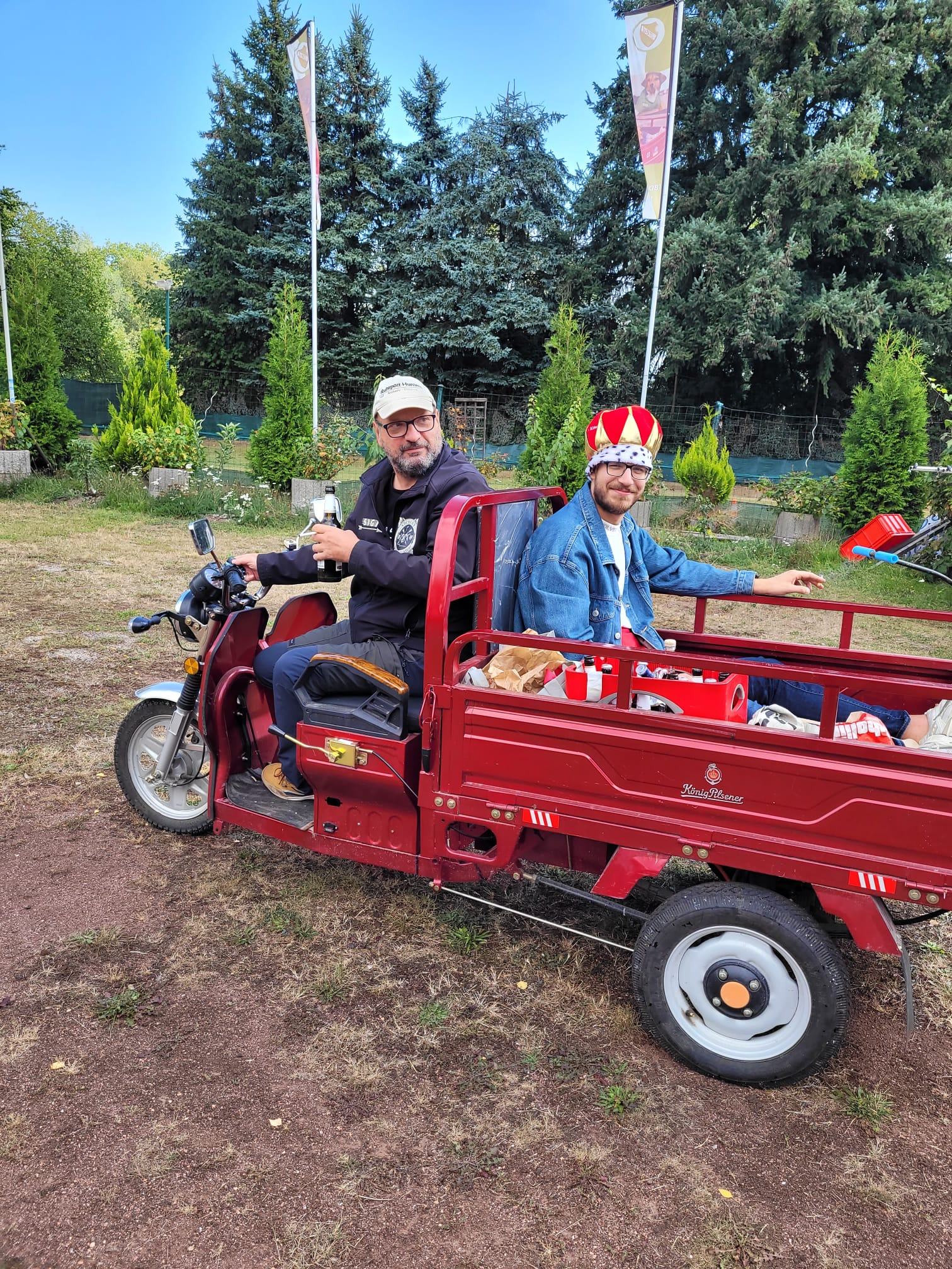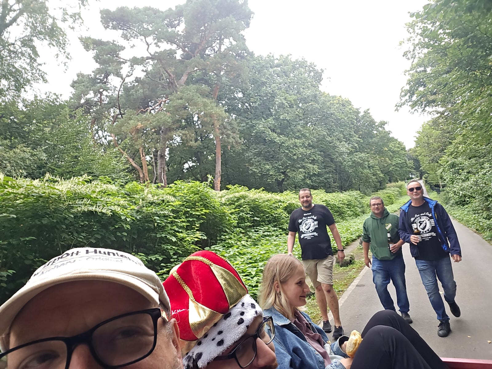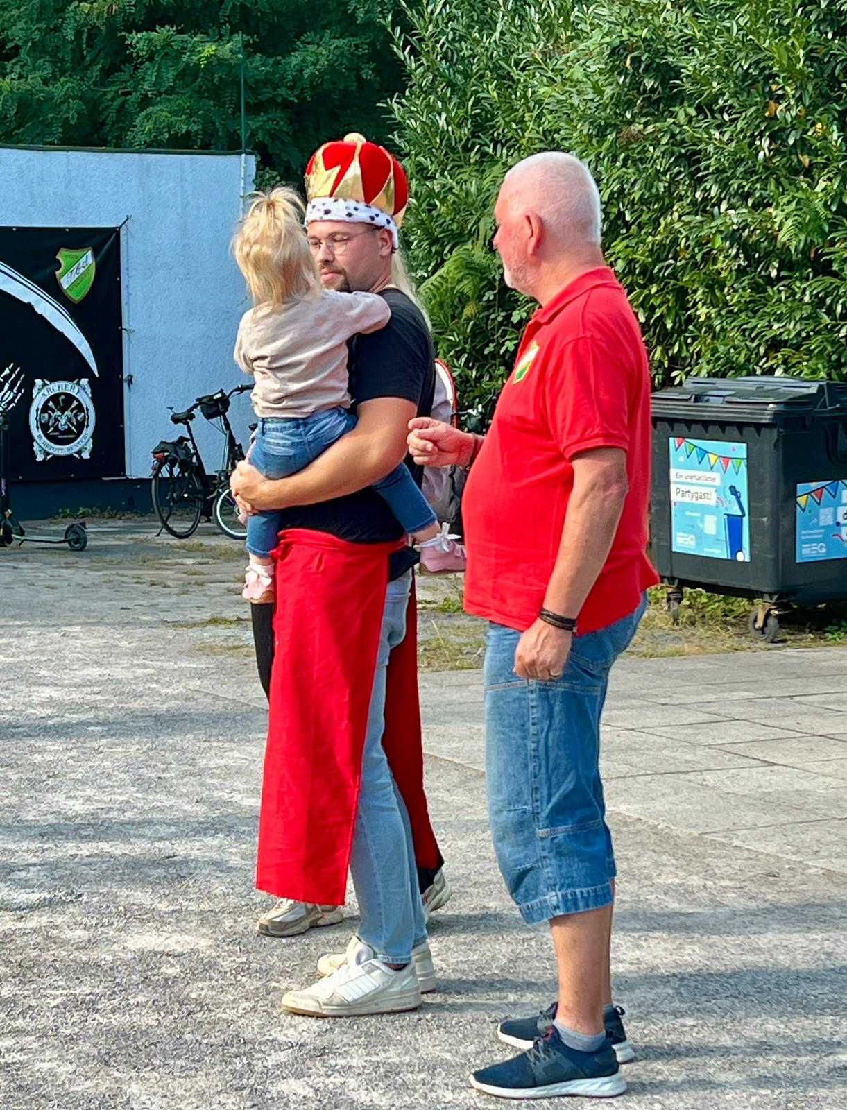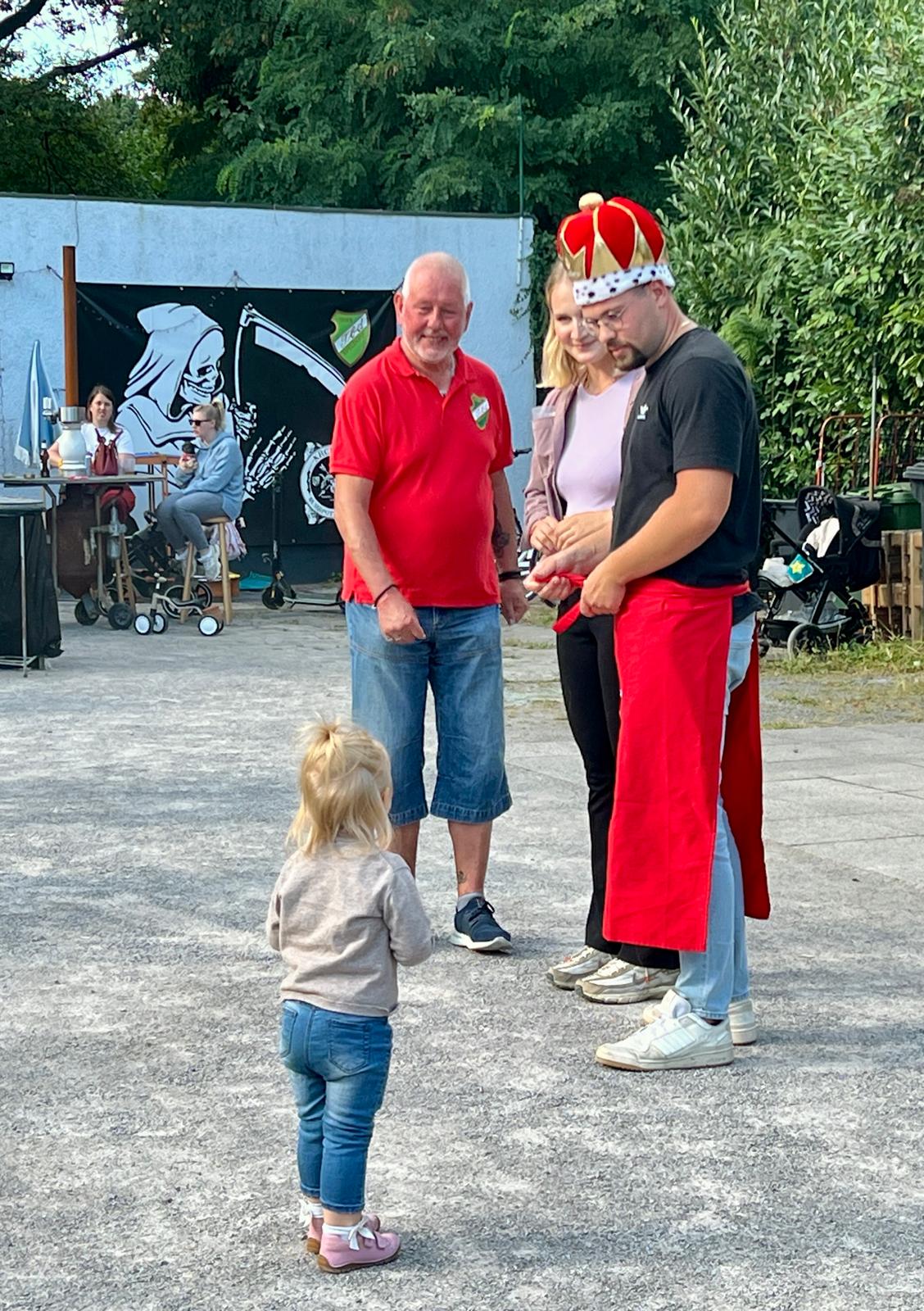 SO Freunde, leider ist auch der Tag Geschichte. Von 10-11 Uhr fuhr ein kleines rotes Auto mit König und Königin hinten drauf von der Hittfeldstrasse zur Platzanlage. Am Abend endete seine Dirigentschaft und ein neuer König wurde an der Brezel geschlagen. Morten übernimmt jetzt für ein Jahr und er hat Anika als Königin gewählt.