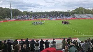 Das brachte der Stimmung jedoch keinen Abbruch, im Gegenteil jetzt wurde es lustiger. Die 90 Minute ließ die Hütte fliegen, die 97 Minuten sie wieder aufsetzten😊. Egal, komisches Spiel, aber die Punkteteilung, geht irgendwie in Ordnung. Ungeschlagen, Tabellenführer, wat willste mehr😊.