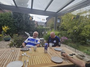 Angekommen, im Dorf von Flake, ging es mit Kaffee weiter und ein Köpi durfte auch nicht fehlen. Um 17 Uhr war der Tisch reserviert, Rinderrouladen, Kartoffeln, Rotkohl und, und, und, warteten auf uns. Nach dem Mahl wurde noch im Biergarten draußen BLiga geschaut und dann ging es mit der Bahn Richtung Bett, was vor 5 Jahren noch um 2-3 Uhr geendet hat, endete diesmal vor 24 Uhr. Wir werden halt alt😉.
